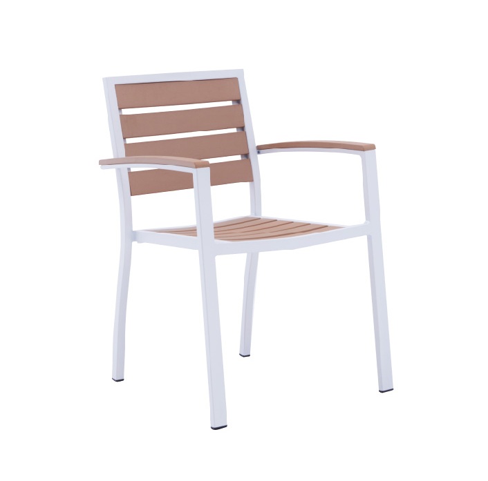 Our wood-look chair projects an exclusive look perfect for your outdoor dining terrace or patio. Made out of a composite wood material with an aluminum frame ensured zero maintenance issues.